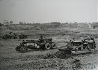 A Typical pool of construction equipment similar to that used to build the Airfield and below plant levelling a new airfield