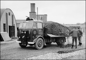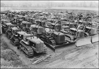 Much of the equipment Wimpey used was imported from America (See Picture) and at the time was new to the UK. These were machines such as bull-dozers, graders, mixers and pavers, which were made by companies such as Caterpillar and Barber Greene.
