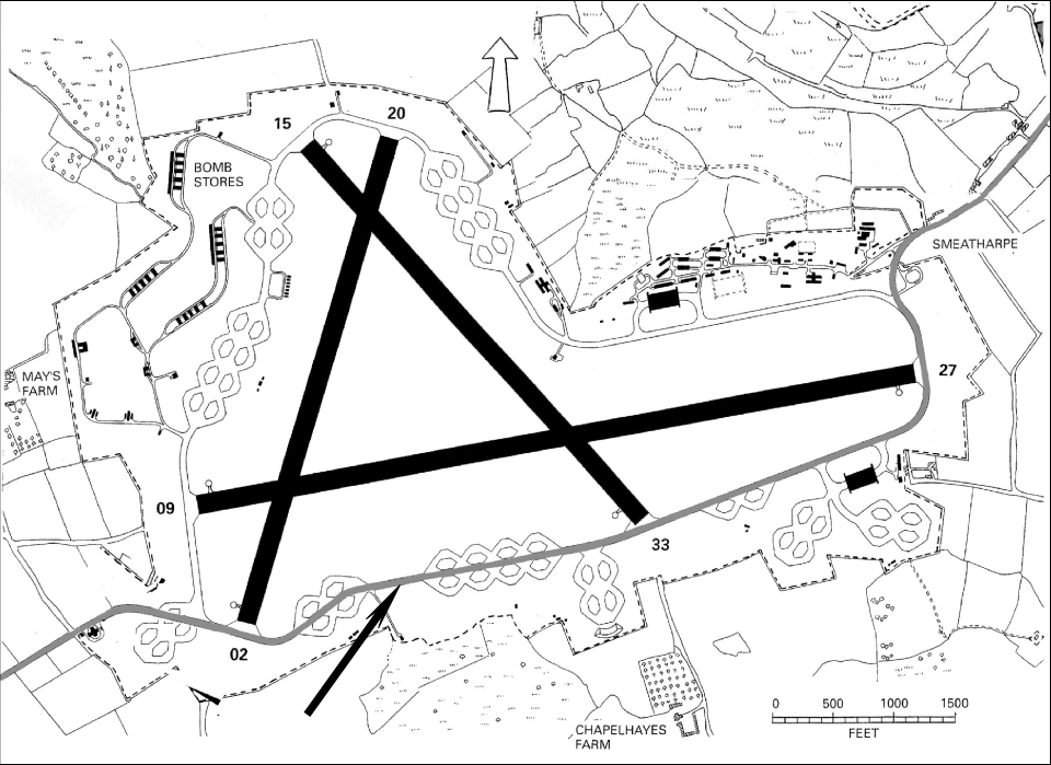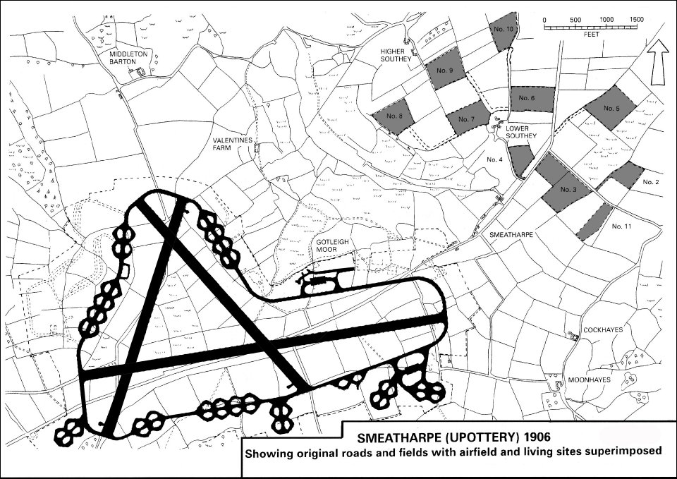Located on the plateau of high ground immediately west of Smeatharpe and often referred to by that name locally, this airfield was officially known as RAF Upottery, as Smeatharpe lies within the overall Parish boundary of Upottery.
