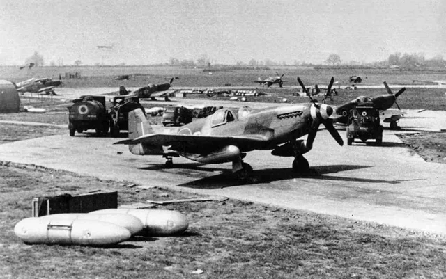 In April, the Fleet Air Arm arrived for a four week stay when 24 Fighter Wing flew in, consisting of 887 and 894 Squadrons, equipped with Seafires. Like their RAF predecessors they flew shipping reconnaissance patrols along the French coast, also providing escorts for Typhoons.