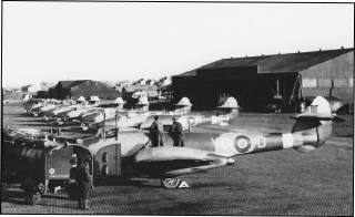 It was in July 1944 that Culmhead was the scene of an event of enormous historical importance — the delivery to 616 Squadron of the very first jet propelled aircraft to enter service with any of the Allied air forces.