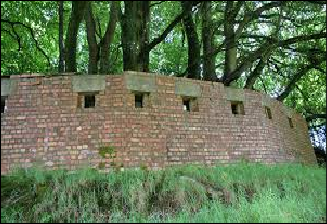 These were semi-sunk and probably fitted with a 20 mm Oerlikon heavy machine-gun capable of being used against ground forces or aircraft.  The brick walls and earth bank offered some protection to the gunner. Surface anti-aircraft machine-gun positions may have been enclosed by sandbag walls instead of brick walls and earth banks and were simply designed to be used only against low-flying enemy aircraft.