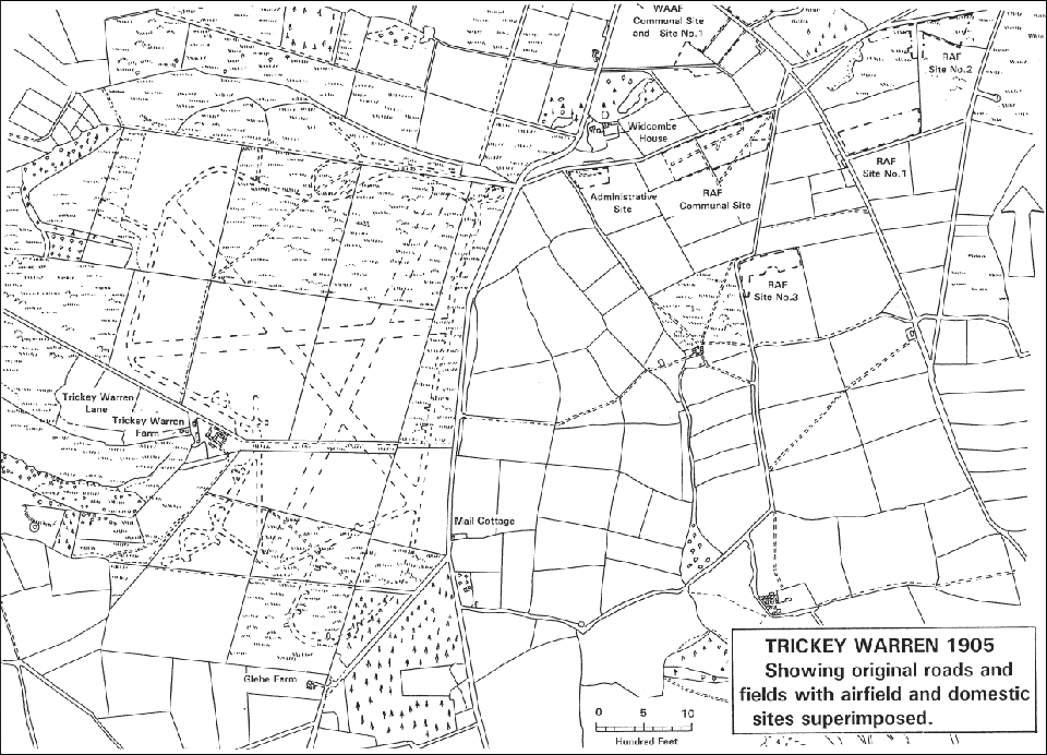 Trickey Warren on the 1905 Ordinance Survey Map with the Airfield and domestic sites superimposed