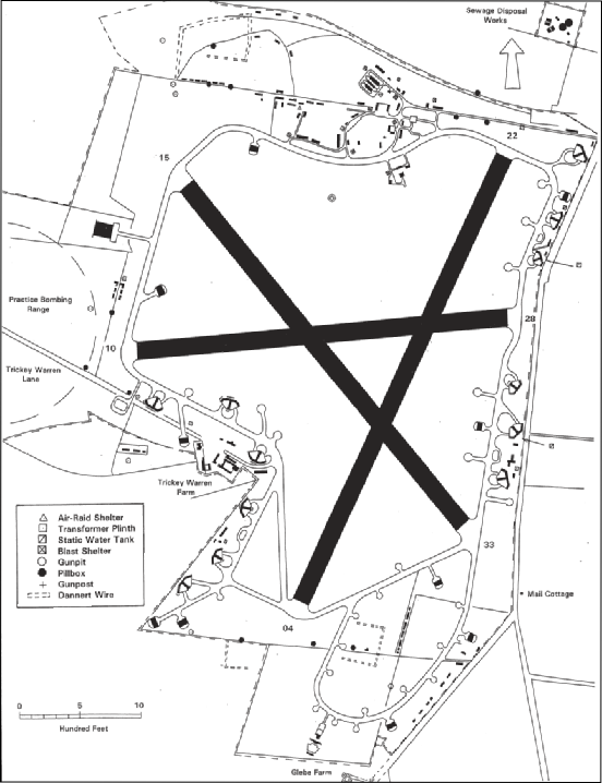 The airfield boundary followed existing public roads and field boundaries. Trickey Warren Farm and surrounding land was requisitioned, and a closing order served on Trickey Warren Lane. This lane became the centre line for a practice bombing range contained within the surrounding fields. By the time that the station officially opened on 1 August 1941 the decision had been made to equip it as an operational fighter station in its own right, and not as a satellite.