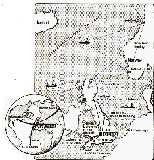 This enabled Culmhead to intercept long range signals and short wave high frequency transmissions from  all over the world though mainly from the three GCHQ STATIONS at Washington, Hong Kong and Ascension Island. See Map